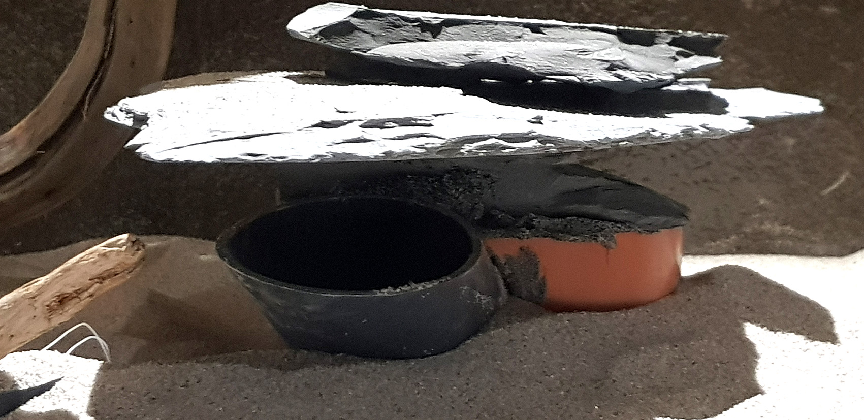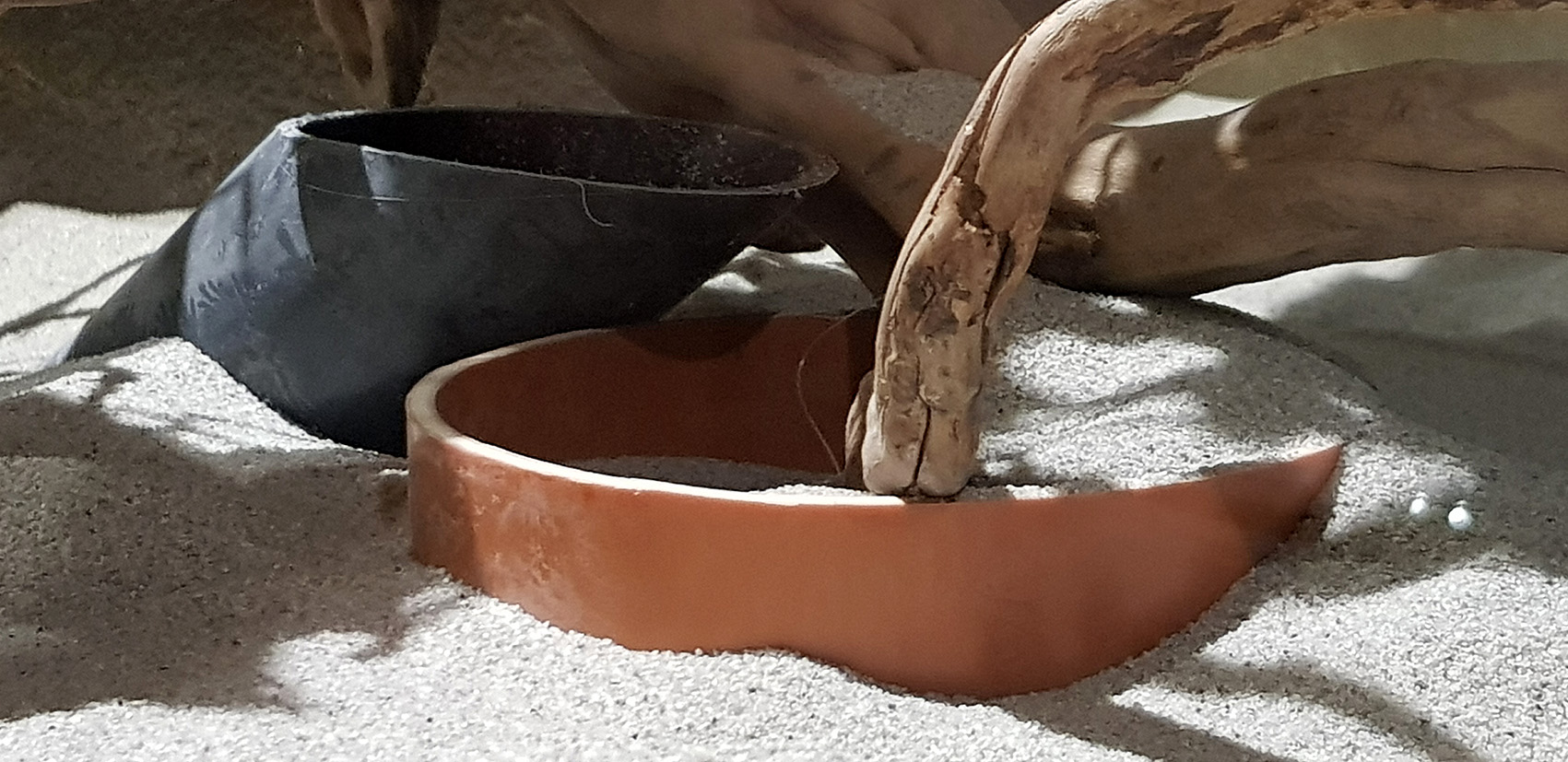 In diese Halbform wird Blaukorn eingeknetet, der die Pflanzen mit Nährstoffen versorgen wird.