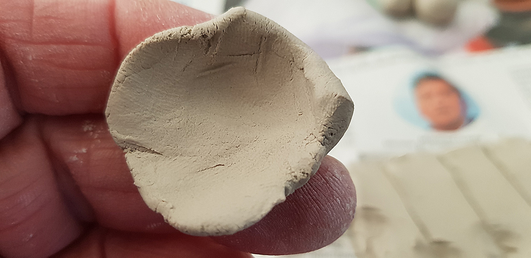 In das ausgeformte Stück Ton kommt dann eine kleine Menge Blaukorn.