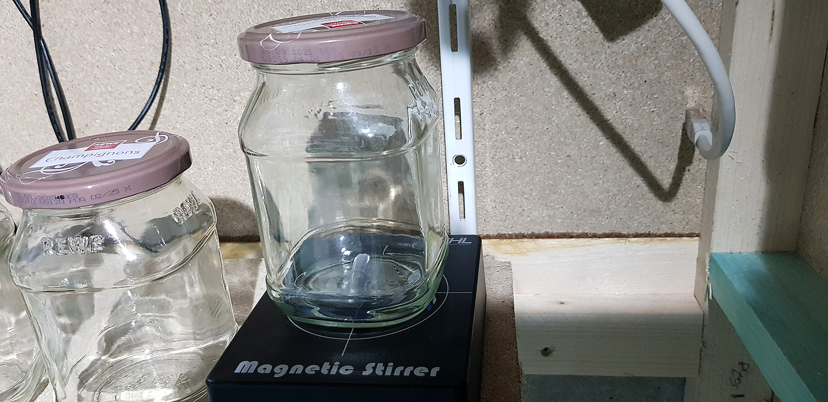 Alle vier Vorratsgläser sind mit einem Rührwerk ausgestattet. Es soll ja schließlich nicht alles in Arbeit ausarten, hab genug malocht, bis ich soweit war wie jetzt. Wenn die Baumärkte wieder offen haben geht's weiter.Januar 2021:
