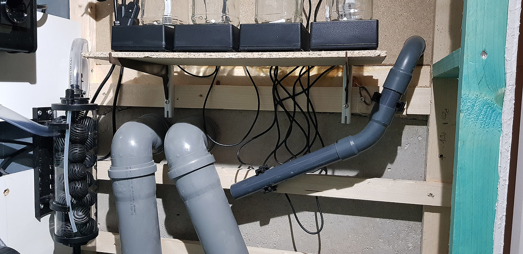 Ich habe danach die Osmoseanlage unter der Spüle in der Küche installiert. Aus diesem Grund ist auch der 800-Liter-IBC-Container im Keller installiert worden um genügend Wasser für den Wasserwechsel vorrätig zu halten.