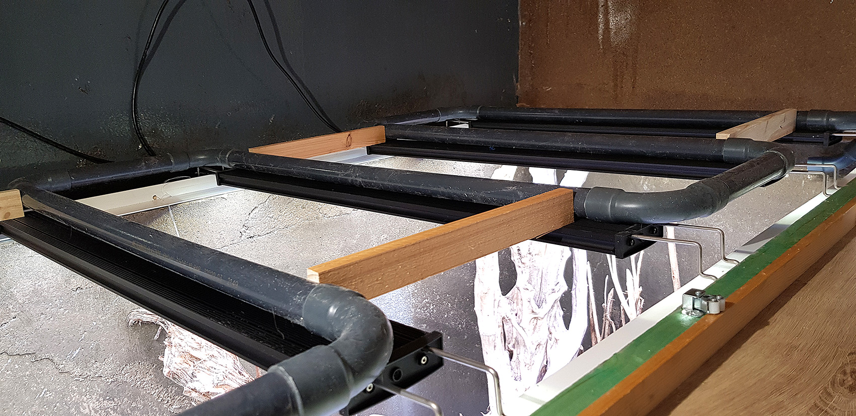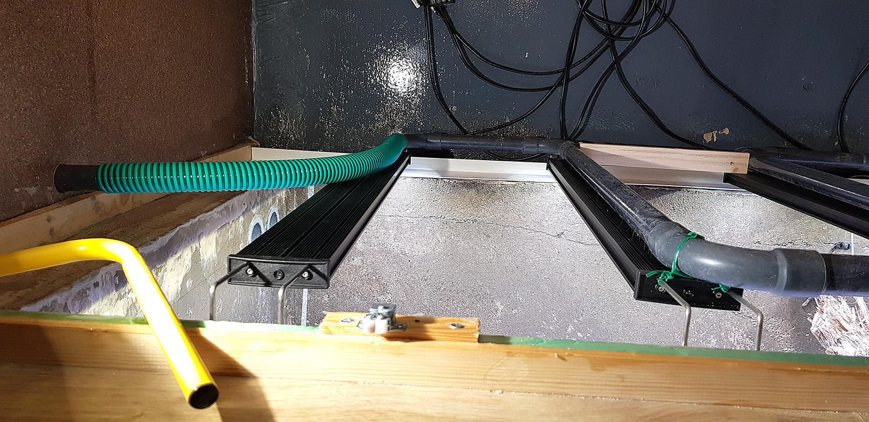 Die Einleitung aus dem Filter wird mäanderförmig über die LED-Balken geführt, die nach einiger Leuchtzeit über 40 Grad warm werden..