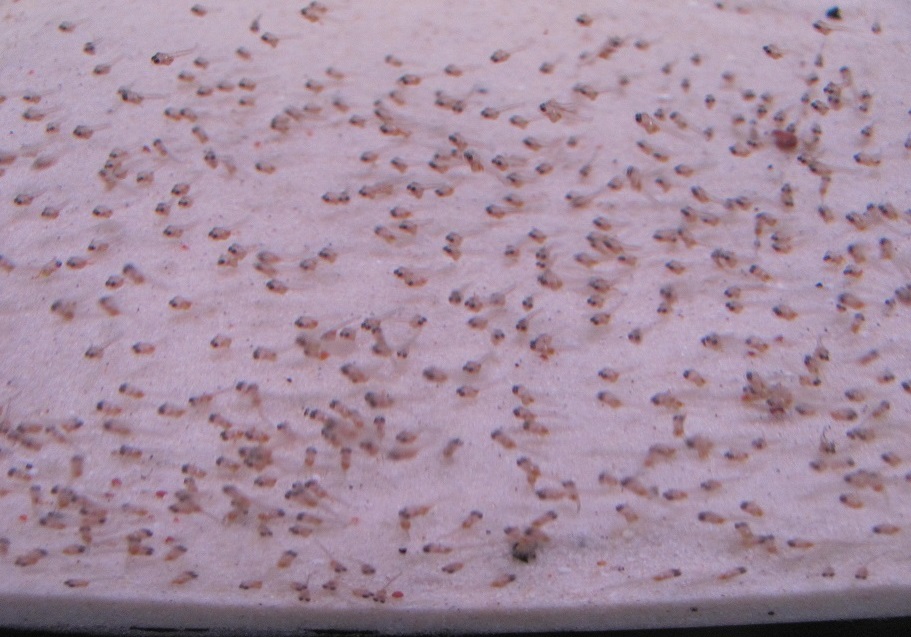 26.07.2021: Am 04.05.2021 sind meine Altums geschlüpft. Nachdem ich 600km gefahren bin um die Tiere bei Simon Forkel abzuholen, wurden sie nach nur 1-stündiger Eingewöhnungszeit in das Becken entlassen. Das war natürlich nur möglich, da mein Wasser zur Zeit 202 µS hat. Man muss sich mal vorstellen, daß Wasser mit 280 µS aus dem Hahn kommt, dann ist ein Aufwand, wie ich und manch anderer treibt enorm. Man sollte natürlich der Tatsache Rechnung tragen, daß sich der Metabolismus auf sehr weichem Wasser angepasst hat. Sind die Tiere im harten Wasser, steht natürlich der Fisch unter enormen Stress. Allein der erhöhte Salzgehalt des harten Wassers zwingt dem Tier besondere Anstrengungen ab. Meine Altums habe ich nach drei Stunden im Becken das erste mal gefüttert und sie haben ordentlich gefressen.